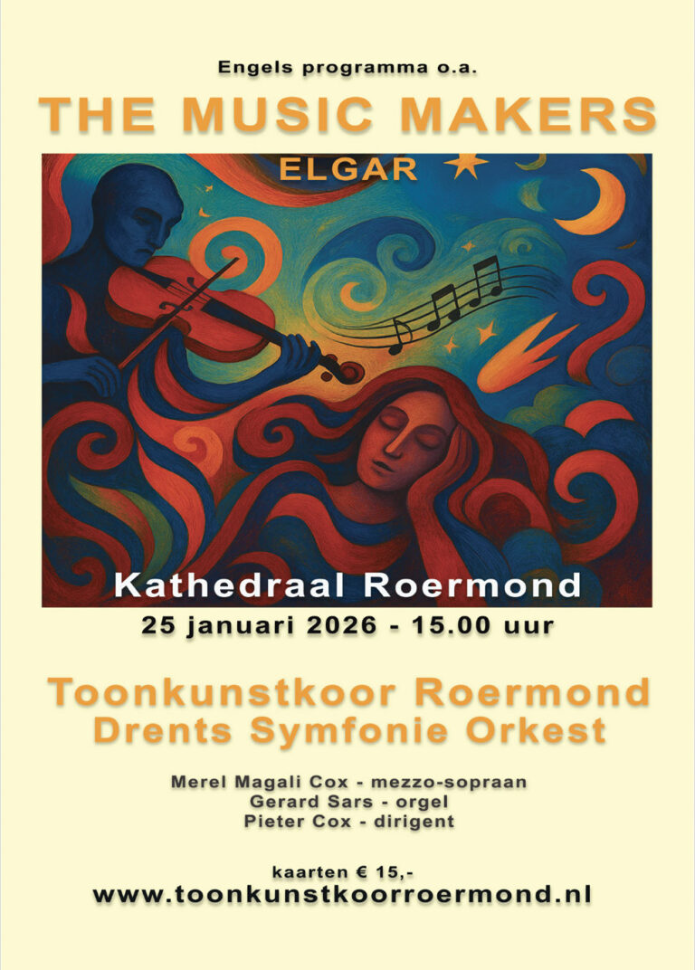 In april 2025 zijn we gestart met de repetities voor de uitvoeringen van Edward Elgar’s ‘MusicMakers’ in Roermond en Meppel (laatste twee weekenden van januari ’26) en ‘The Armed Man‘ van Karl Jenkins in november ’25.