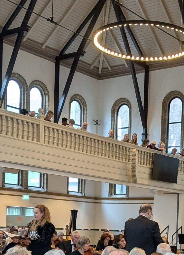 Zaterdagmorgen. Iedereen schrok als ik iets zei. Oh wat rot, misschien kun je morgen toch wel mee zingen. Maar ik voelde dat dat niet ging gebeuren. Het had gewoon meer tijd nodig dan tot het concert op zondag. Maar ik had me al voorgenomen om gewoon te genieten van het luisteren. Tijdens de repetitie die middag, zat ik met mijn potlood klaar en mijn muziek, maar ik hoefde helemaal niks op te schrijven. De potlood verdween weer in mijn tas, en gewoon genieten. Ik maakte een paar opnames met mijn telefoon en nam me voor om dat zondag ook te doen. Helemaal achterin de kerk was het geluid heel mooi, dus ik besloot om zondag ook achterin te gaan zitten, ook om niemand tot last te zijn als ik iets wilde opnemen.